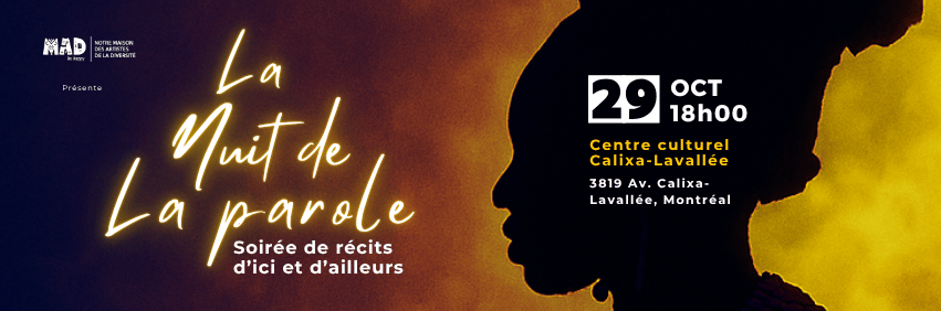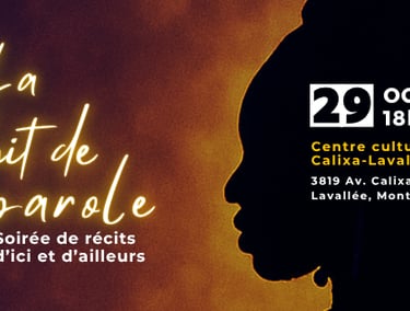 RECONNUE POUR LES EXPÉRIENCES LES PLUS VRAIES À MONTRÉAL, LA NUIT DE LA PAROLE DÉBARQUE AVEC FORCE. PRÉSENTATION : LA PREMIÈRE ÉDITION, UN ÉVÉNEMENT RARE ET PUISSANT, AVEC DES NARRATEURS AUTHENTIQUES ET DES MOMENTS ARTISTIQUES INOUBLIABLES. CETTE SOIRÉE EST CELLE OÙ LES HISTOIRES VRAIES, L'ART VIVANT ET L'ÉCOUTE PROFONDE CONVERGENT.